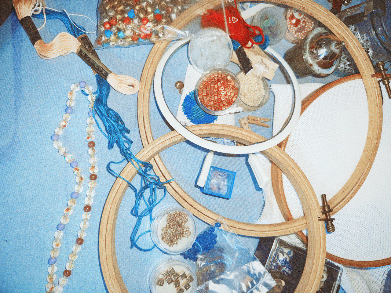 Wir verschönern Kleidungsstücke mit selbstgemachten Patches, Stickereien und Perlen.