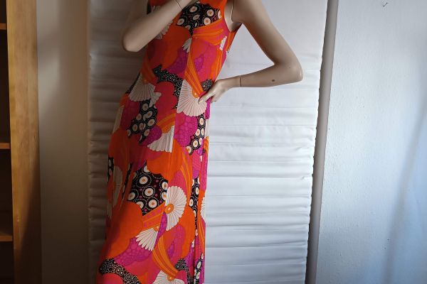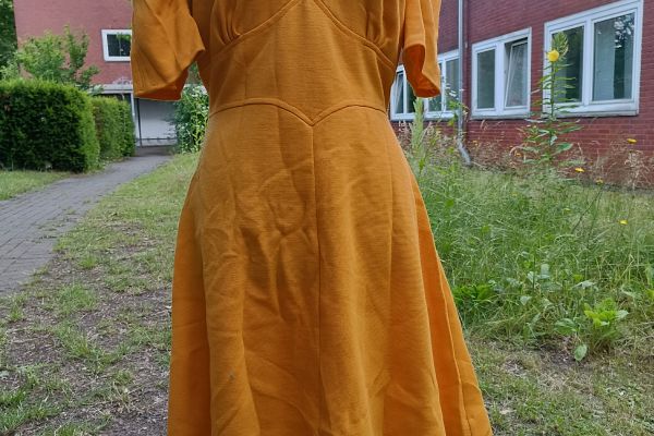 70er-Jahre-Kleid, orange mit grossem Kragen, Gr.38