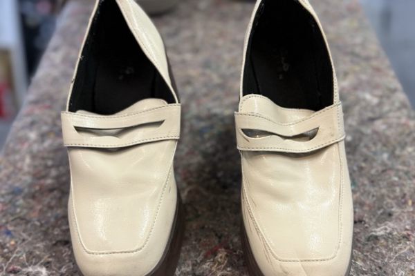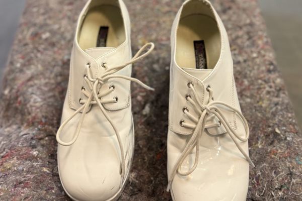 Die Oberfläche ist Lack und etwas empfindlich. Man sieht Gebrauchsspuren. Der Schuh lässt sich binden.