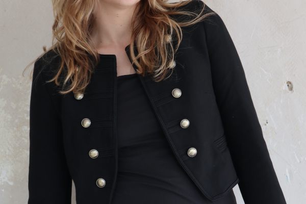 Schwarzer Blazer mit roten Streifen und Schulterpolstern