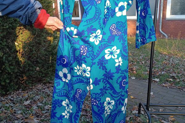 blauer Onesie, Blumenmuster, Gr. 34