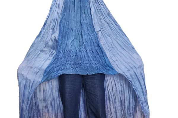 Burka, blau mit Stickereien, Original 60iger Jahre
