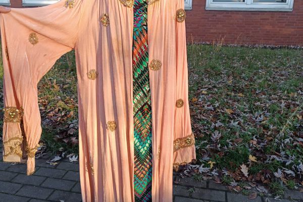 Lachsfarbener Samtumhang mit Schmuckelementen