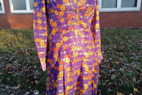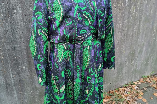 lila- gelbes Kleid, Faltenrock, 70er, Gr. ca. 40