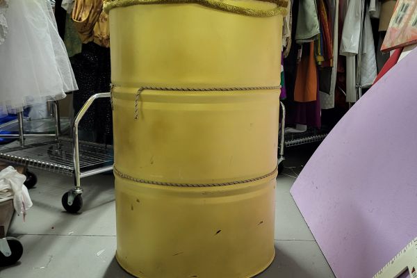 Farbe: gold, Polsterstoff orientalisch gold/glitzer Material: Tonne: Blech/Polster: Polyester Maße: Höhe 95cm/Durchmesser 55cm