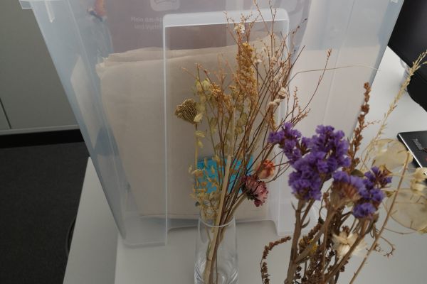 transparente Vasen mit Trockenblumen aus biologischem Anbau, ca. 15 Stück zur Ausleihe