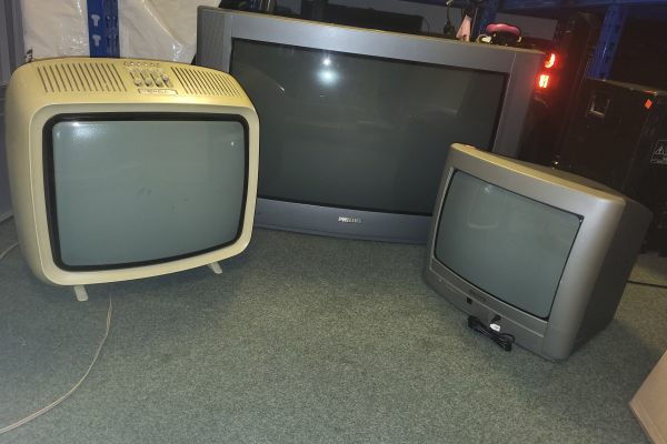 2 Stück verschiedene Größen 1. 50x50x50 cm 2. 34x44x34 cm voll funktionsfähig 1. mit eingebautem VHS-Player, Scart- und Antennenanschluss 2. mit Scart-, 3-Cinch- und Antennenanschluss