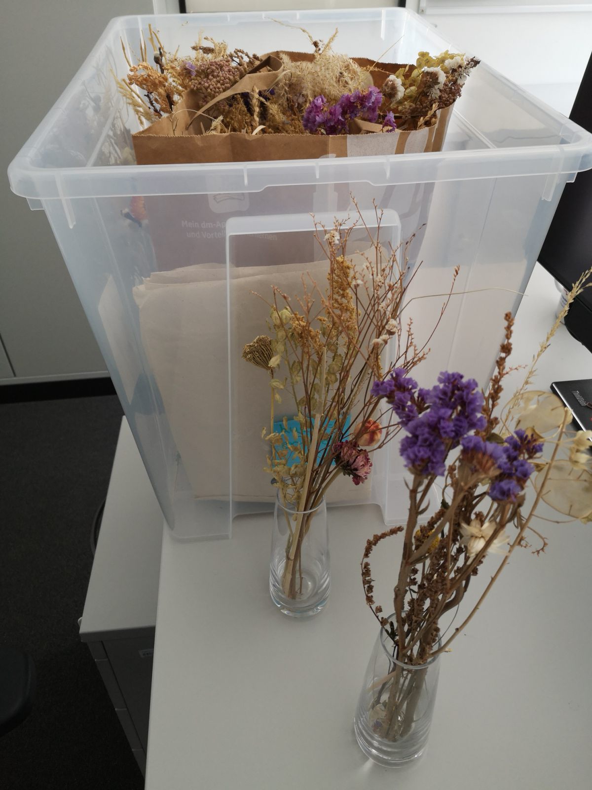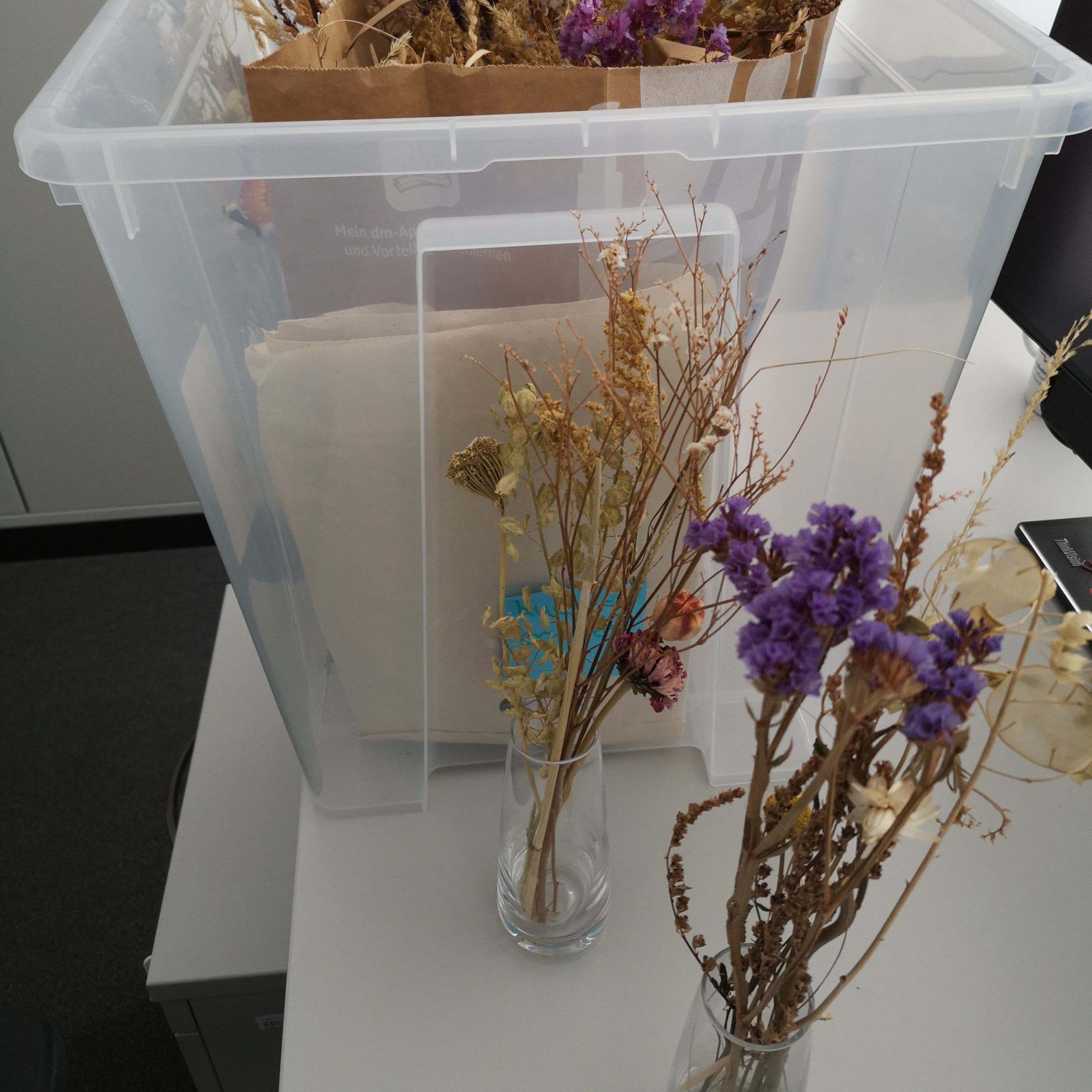 transparente Vasen mit Trockenblumen aus biologischem Anbau, ca. 15 Stück zur Ausleihe