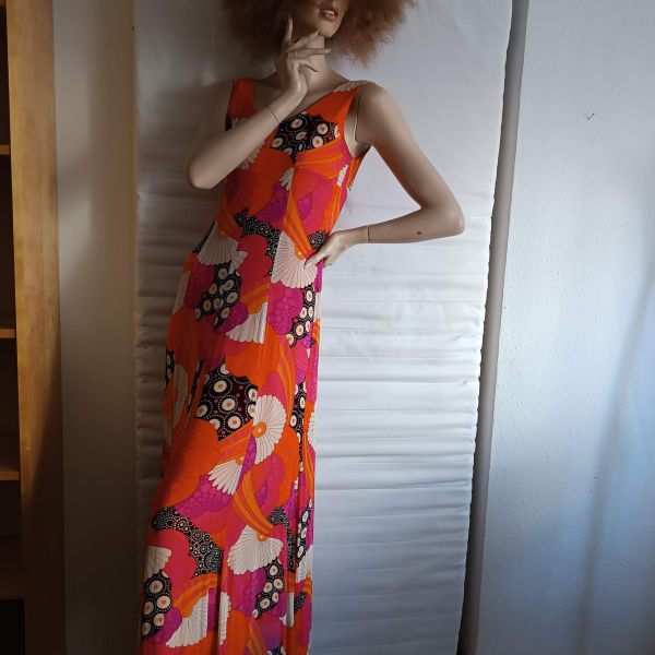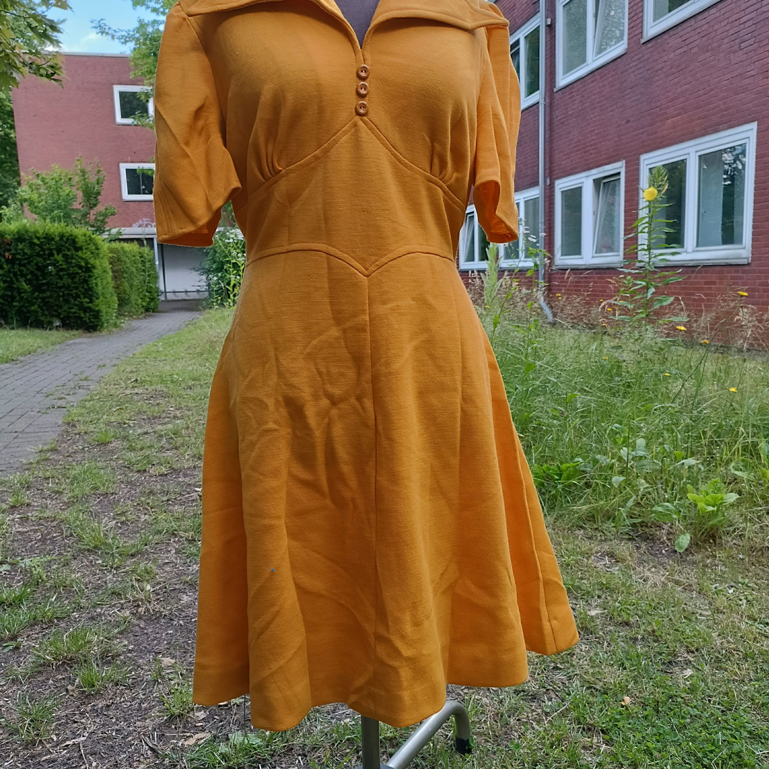 70er-Jahre-Kleid, orange mit grossem Kragen, Gr.38