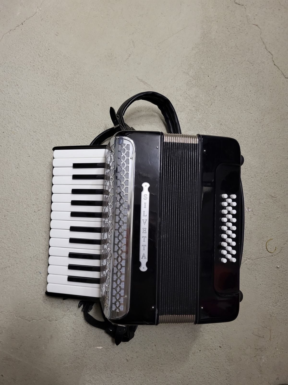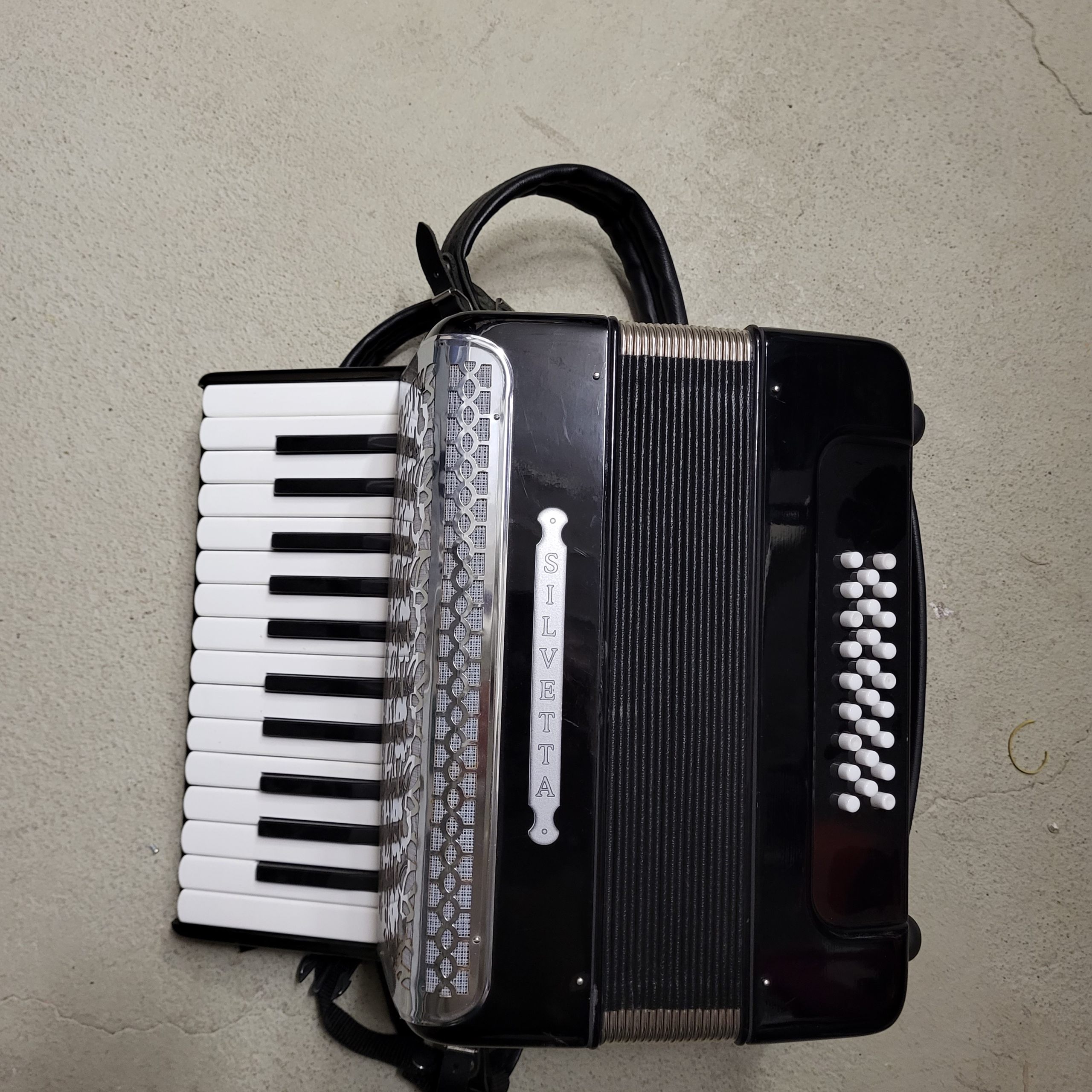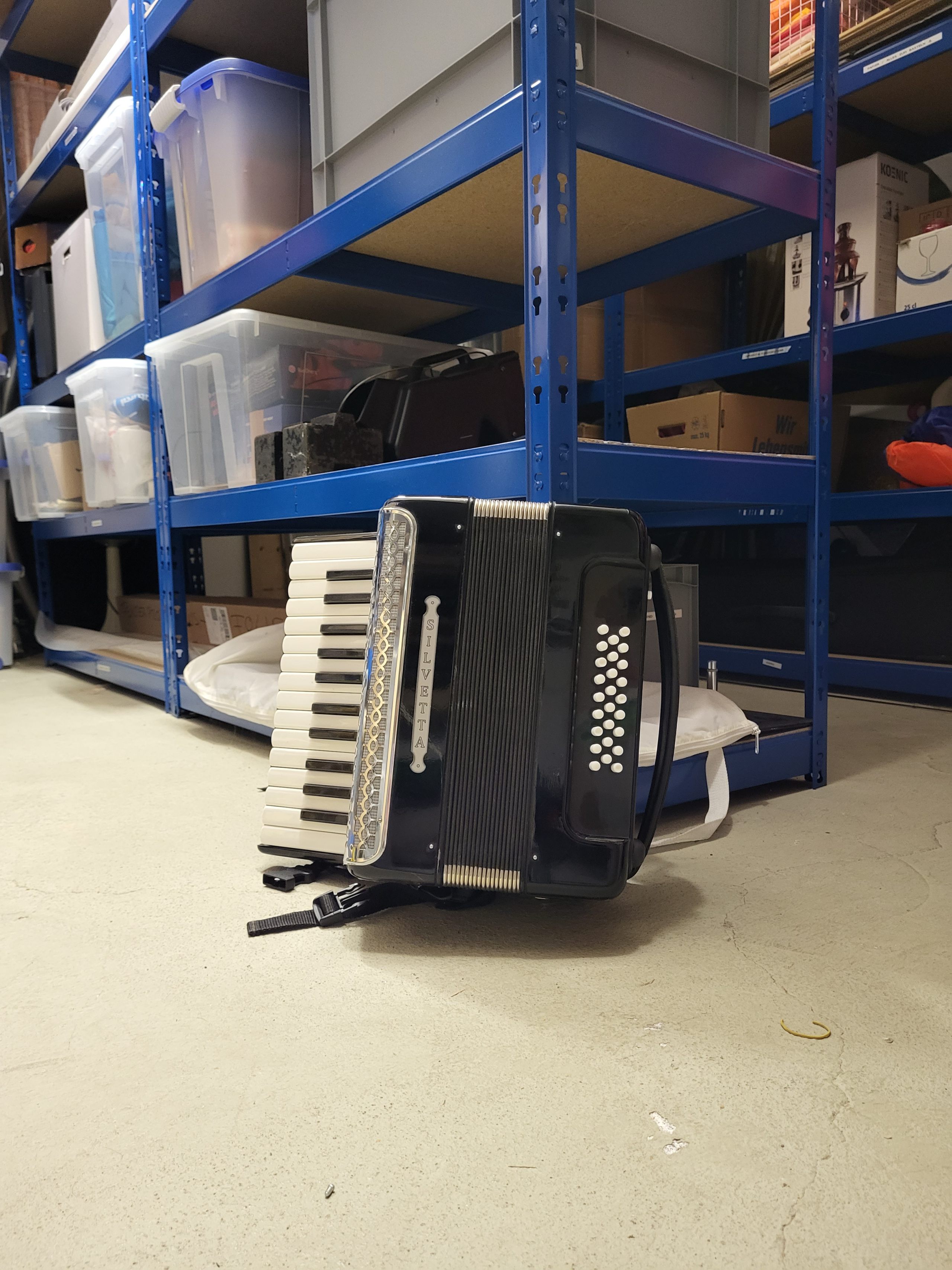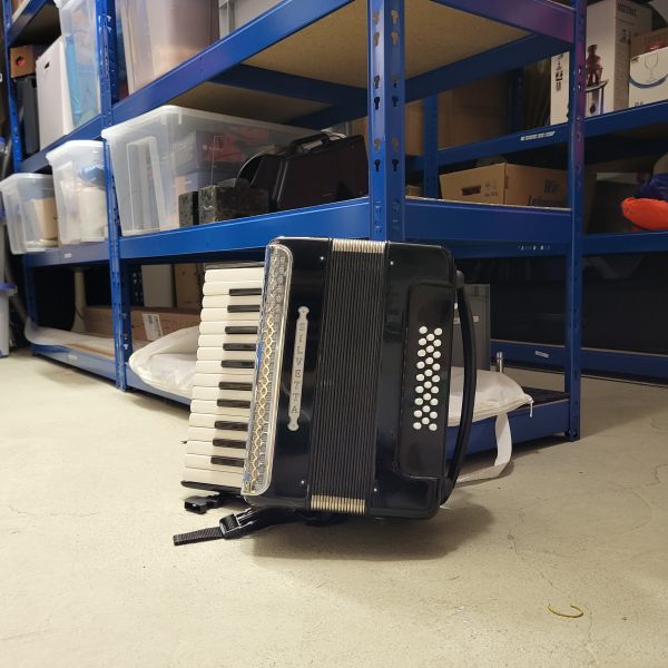 Hinweis: Das Akkordeon ist eher als Requisit und weniger als funktionstüchtiges Instrument geeignet, man kann aber auf ihm spielen.