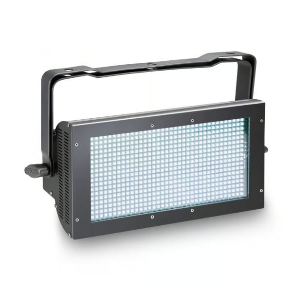 2x Strobe, Blinder und Wash Light in einem Gerät 648 RGBW SMD-LEDs mit je 0,2 W hohe Lichtleistung von 6,700 lm 1 bis 30 Strobe-Blitze/sec einstellbar DMX-, Sound- und manuelle Steuerung Standalone- und Master/Slave-Betrieb Technische Daten: LED-Typ: 648 x 0,2 W RGBW SMD-LEDs Abstrahlwinkel: 100° Anzahl DMX Kanäle: 1/2/3/4/7 DMX Anschluß: 3-pin XLR In/Output Stromversorgung: AC 100 - 240 V 50-60Hz Stromanschluß: Power Twist In/Output Leistungsaufnahme: 160 W Farbe: Schwarz Abmessungen (B x T x H): 335 x 93 x 182 mm Gewicht: 3,1 kg
