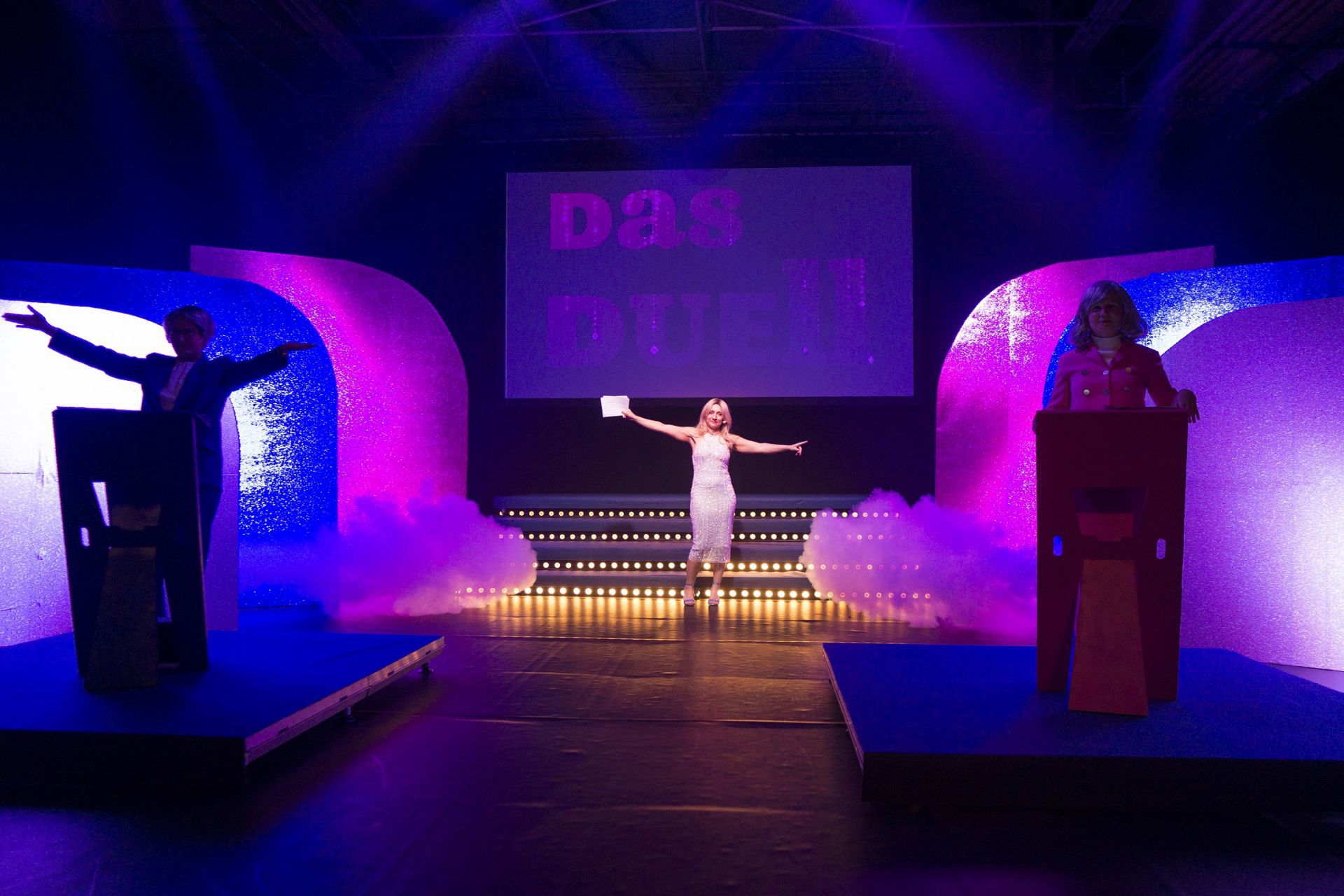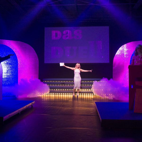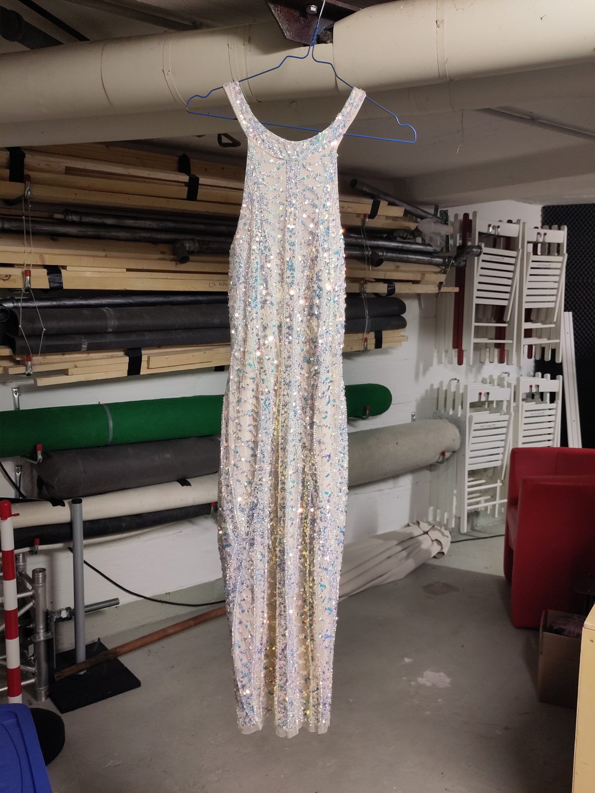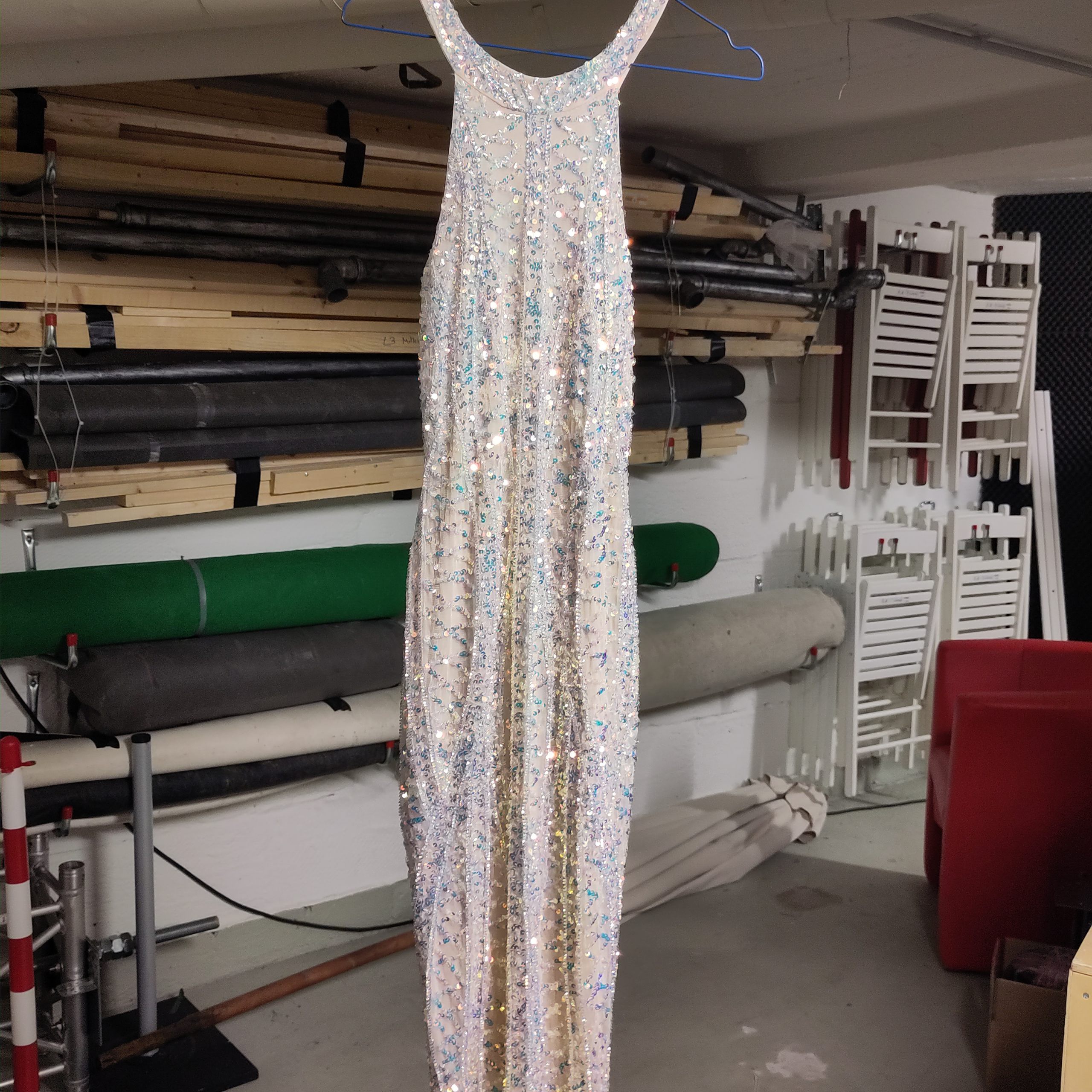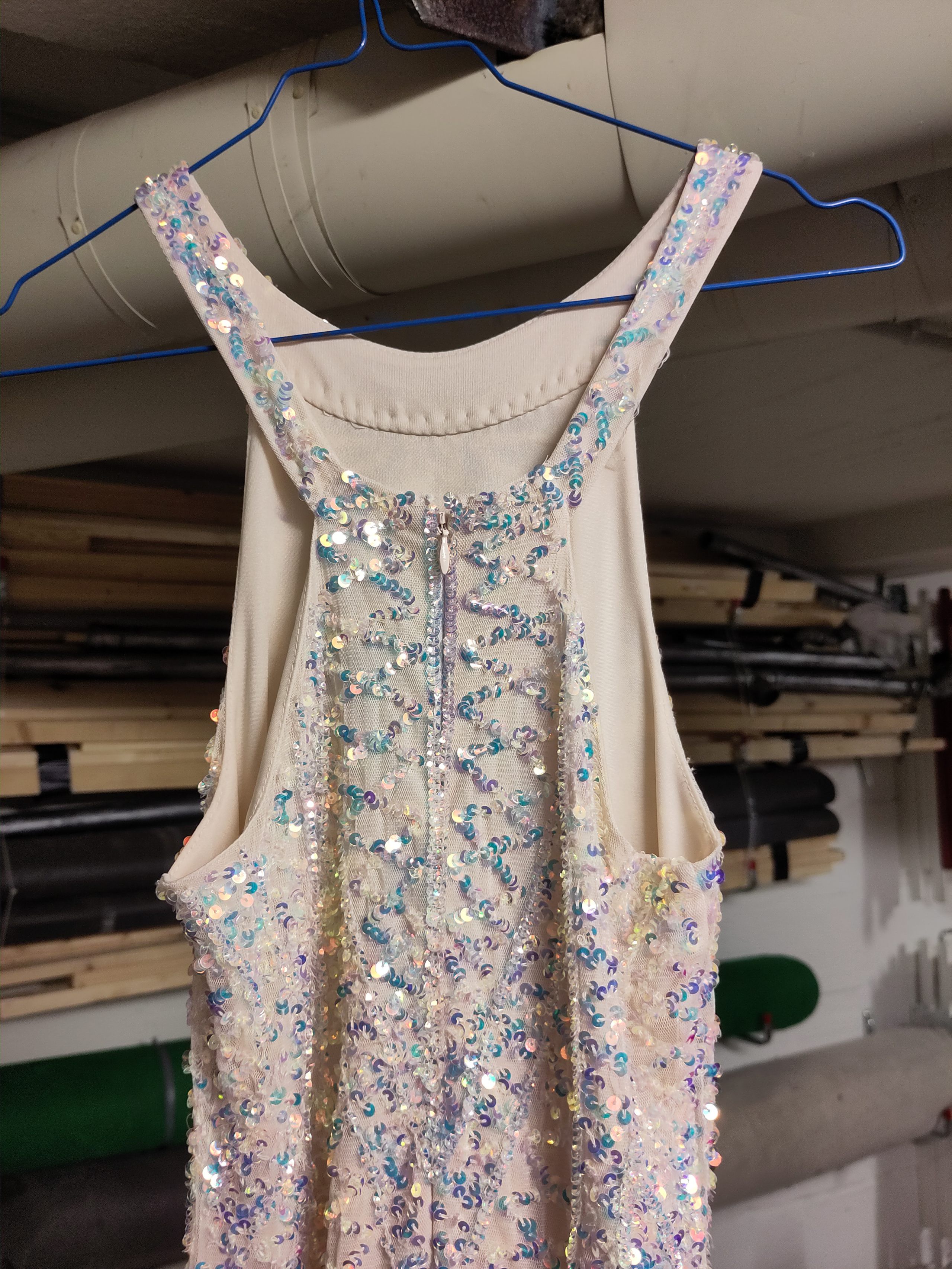 Oberteil Pannesamt schwarz, Rock goldfarben.