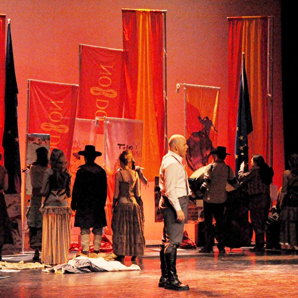 Auf dem Szenenbild sind die Fahnen auf der Bühne zu sehen, verliehen werden die FahnenSTANGEN.