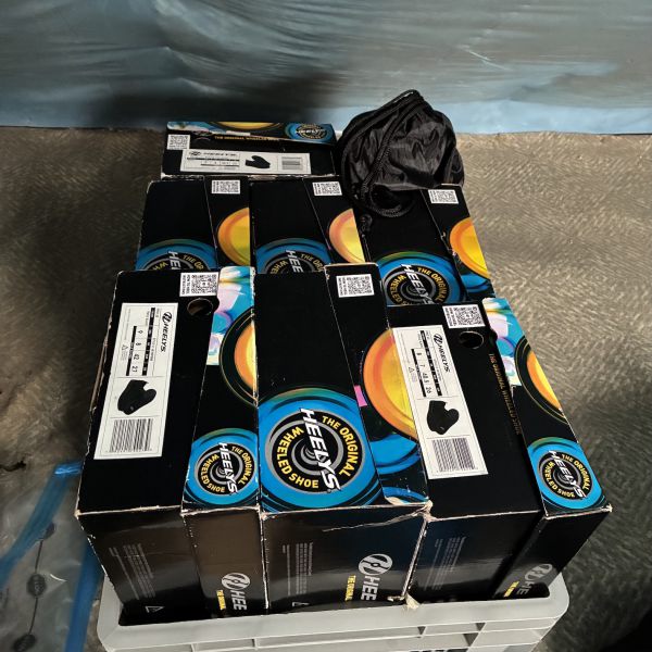 Die Schuhe und die Räder haben wir nur auf glatten Bühnenböden benutzt. Wir möchten euch bitten, die Räder auszutauschen, falls ihr die Schuhe draußen verwenden wollt, da sie sich durch den Gebrauch stark abnutzen.