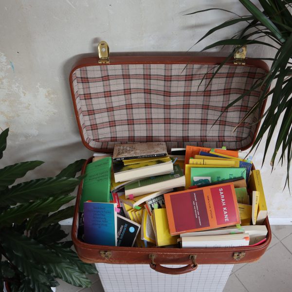 Koffer 80x40cm mit verschiedenen Büchern aus der Theaterwelt, Reclamhefte etc