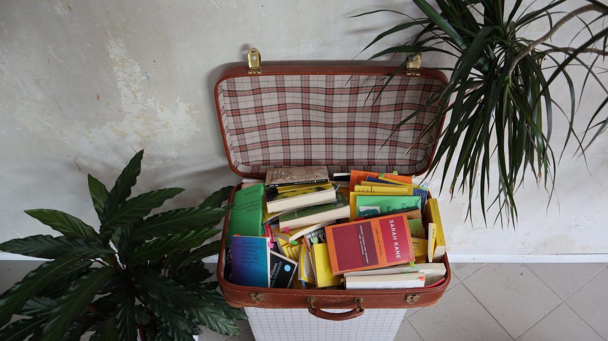 Koffer 80x40cm mit verschiedenen Büchern aus der Theaterwelt, Reclamhefte etc
