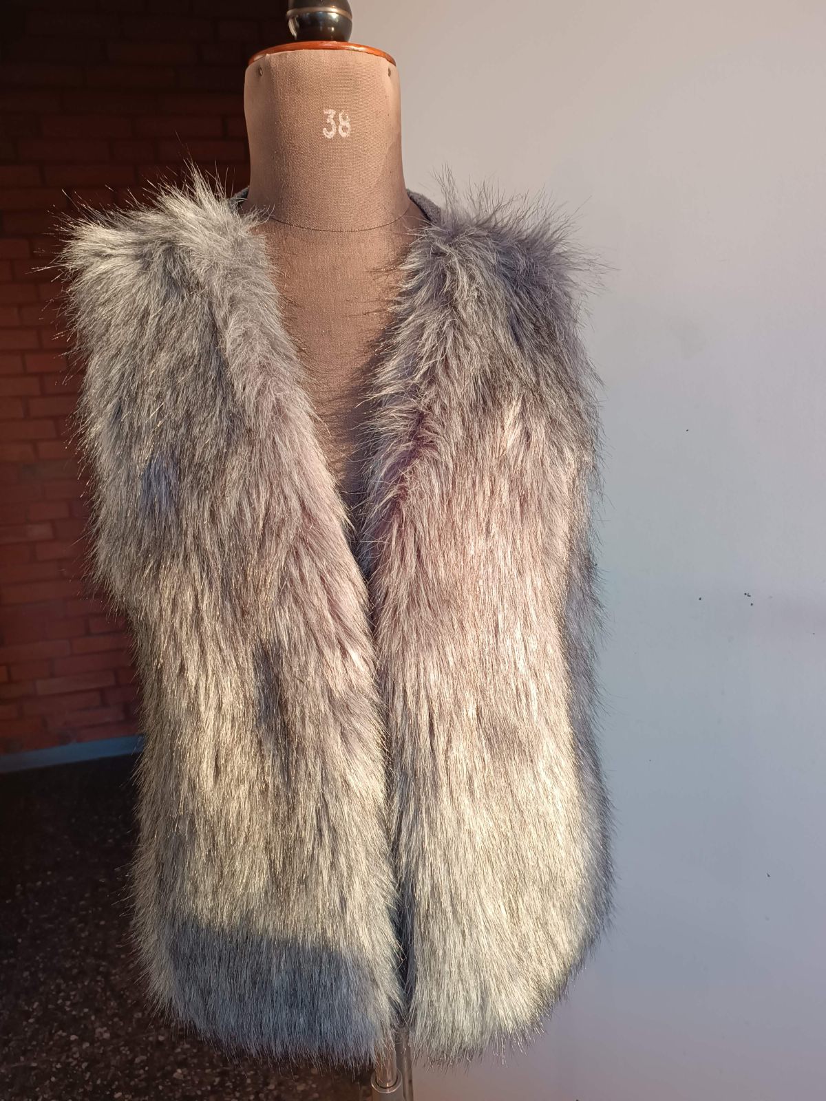 Kunstfellweste, Rückenteil Strick, Gr. 36/38