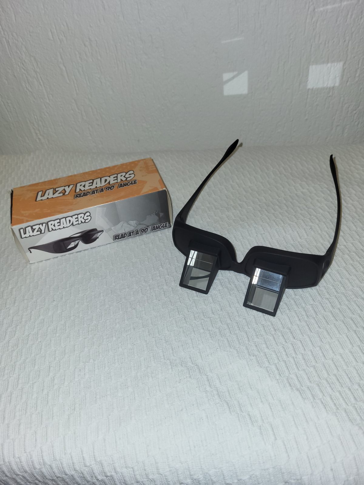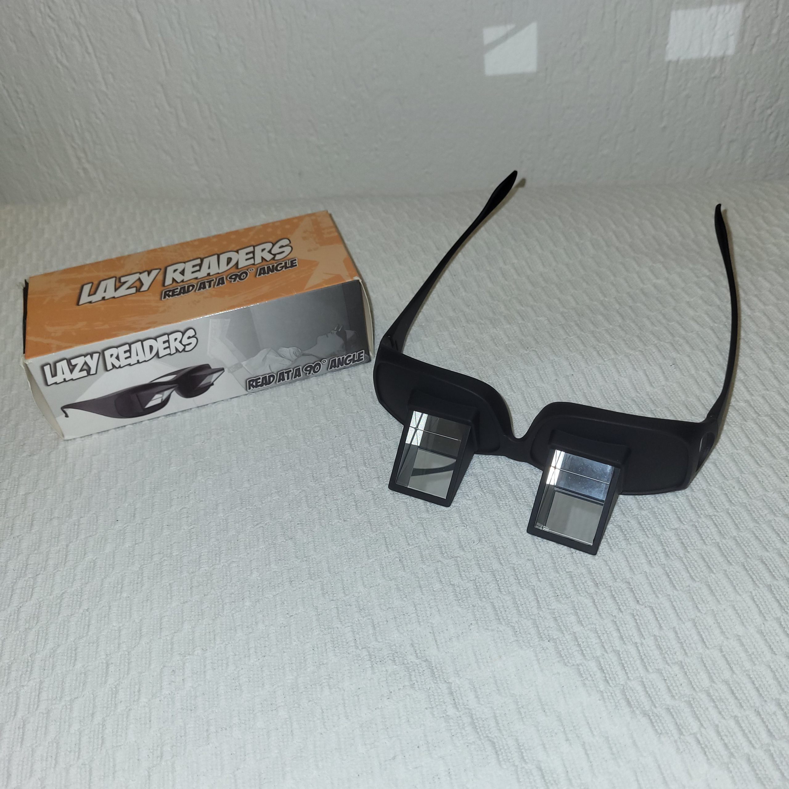 10 Brillen, die mit Spiegeln den Blick umlenken, damit man z.B. im Liegen bequem lesen kann.