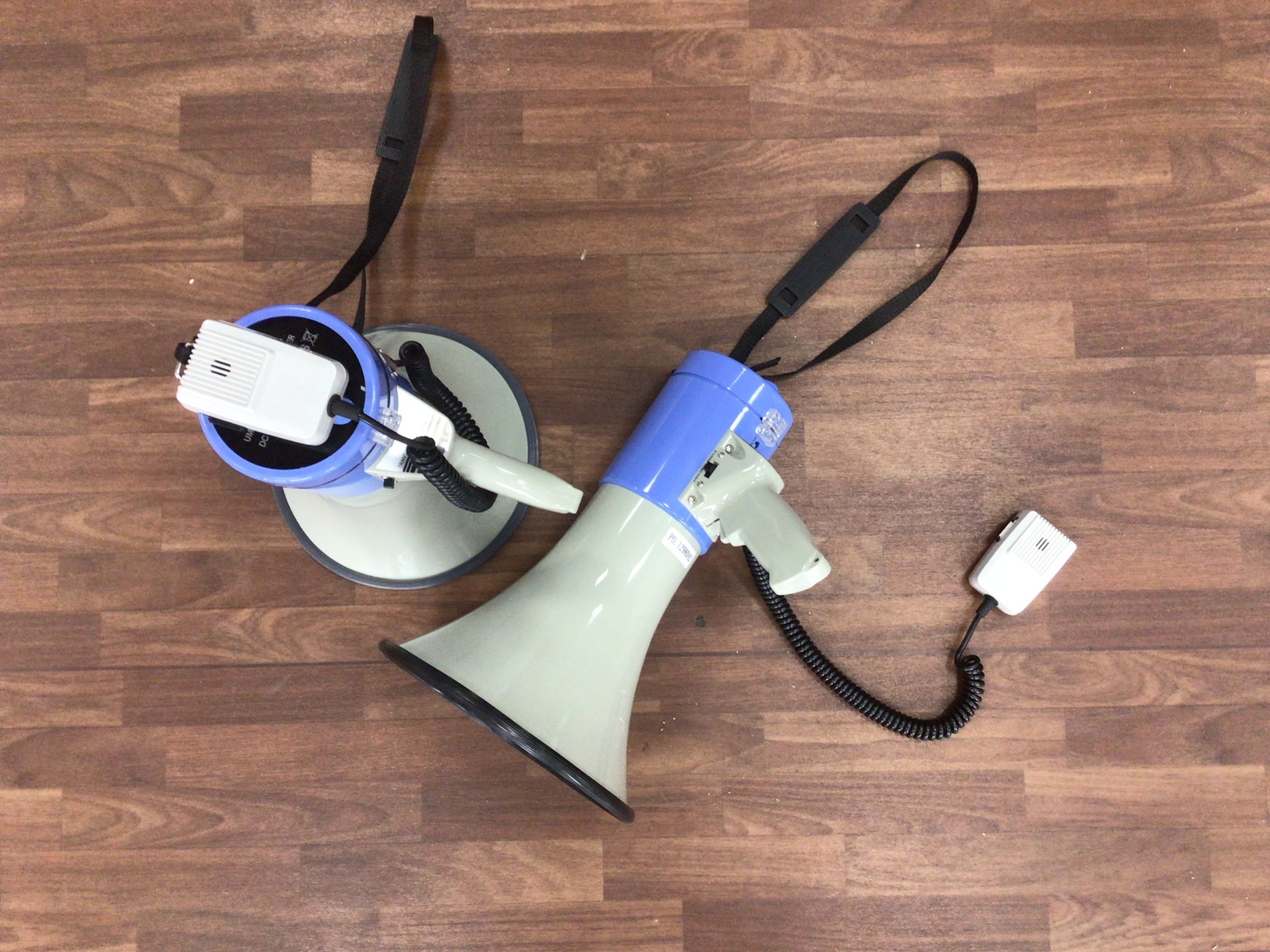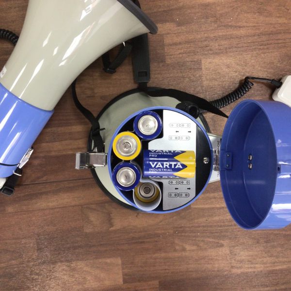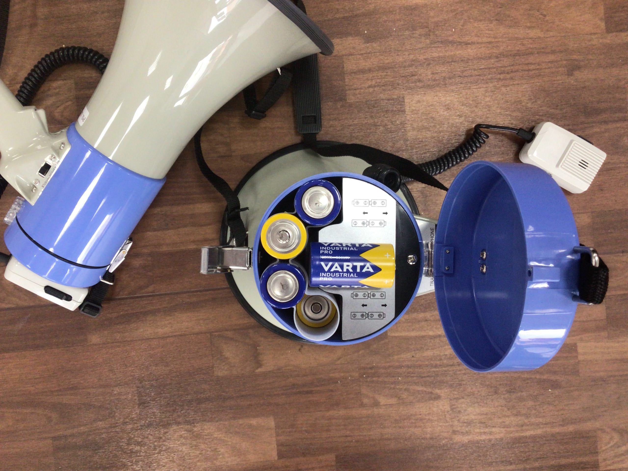 Hinweis: Ein Megafon braucht 8 Batterien (UM-2 DC 12V). Megafone werden ohne Batterien verliehen!