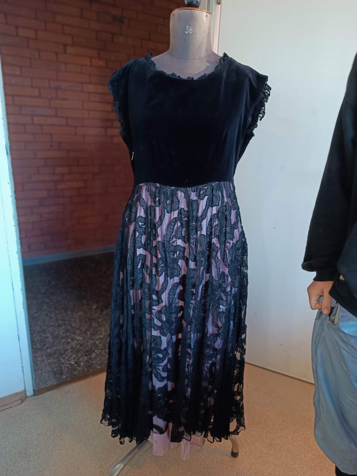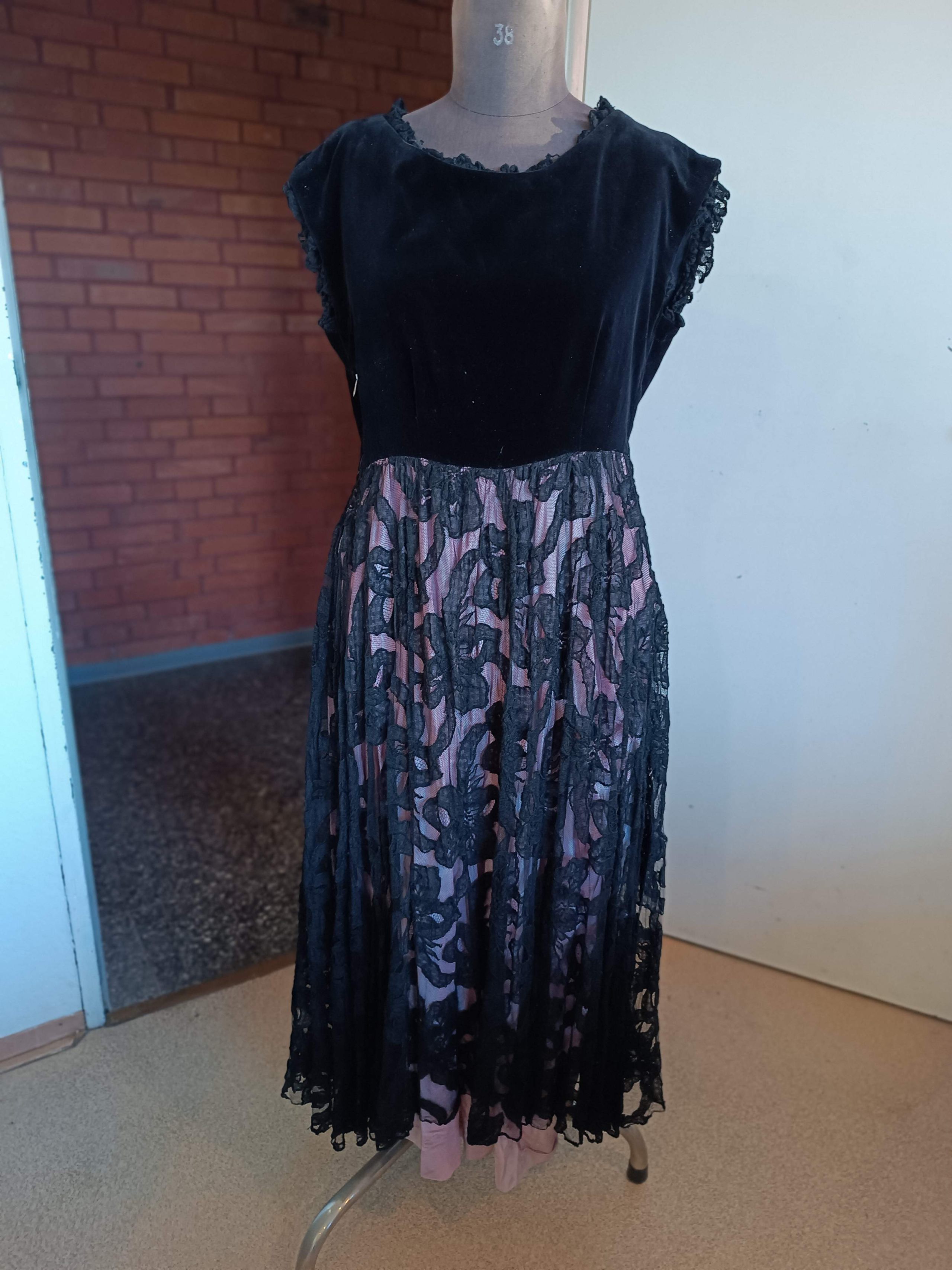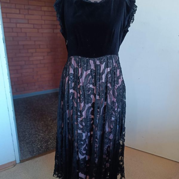 Rock aus schwarzer Spitze mit pinkem Futter.