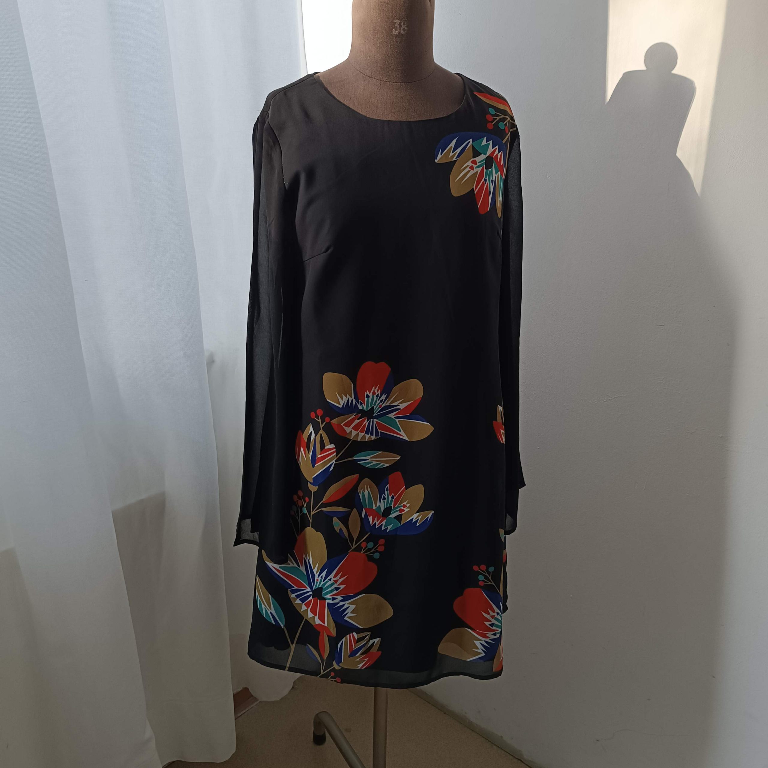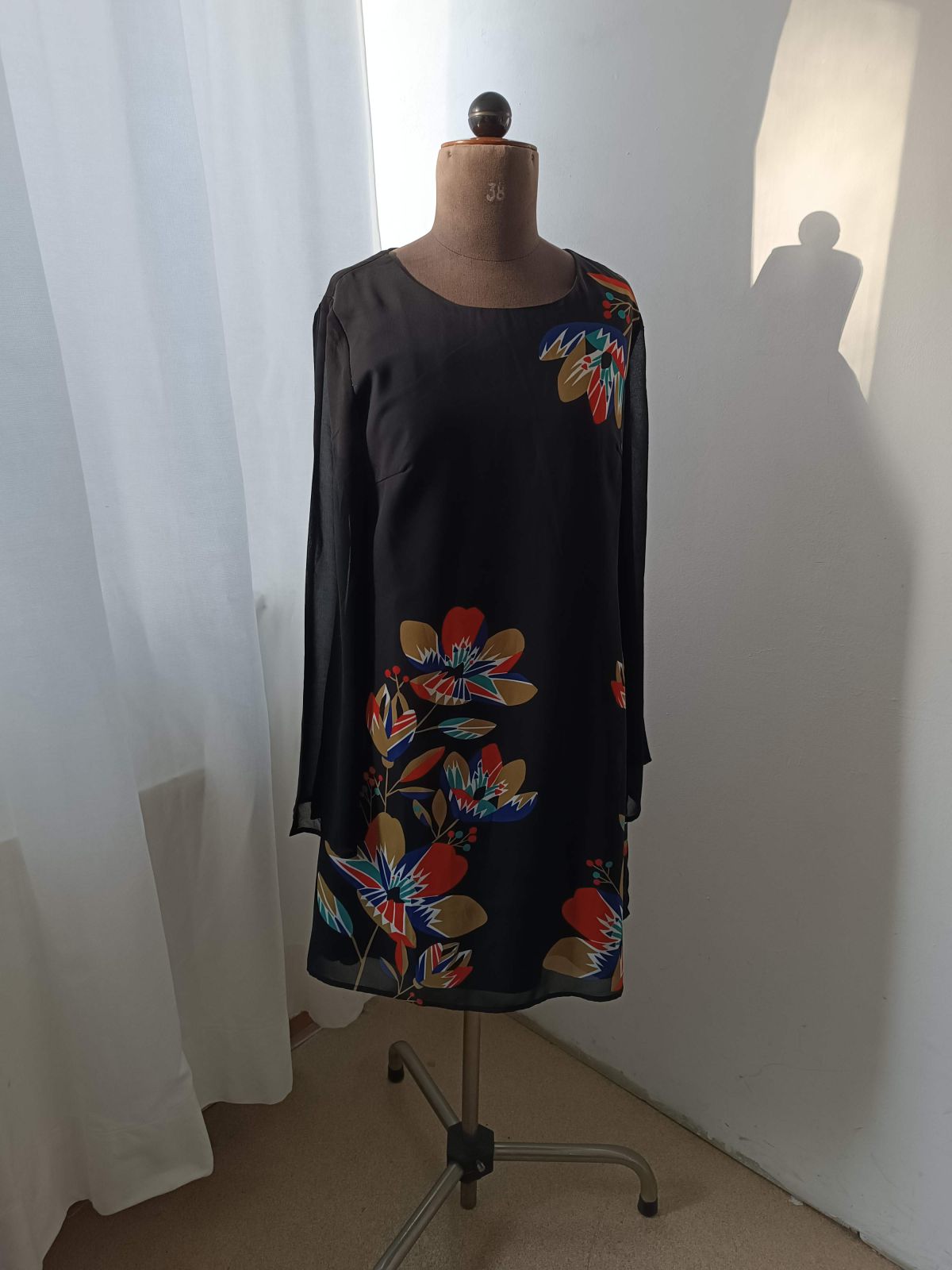 Schwarzes geblümtes Hängerkleid mit Chiffon Ärmeln