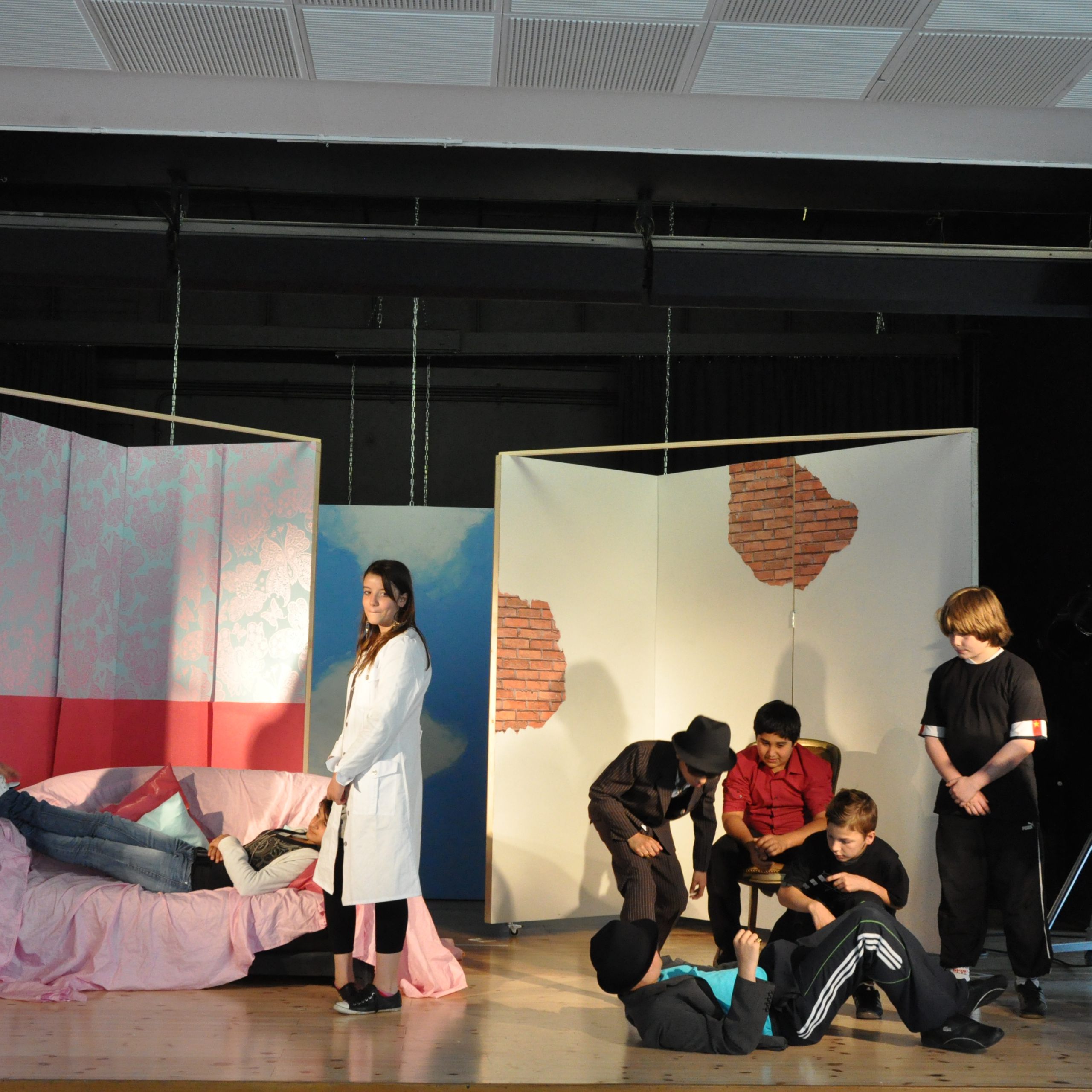 Stellwand mit weißen elastischen Stoff bespannt, kann als Bühnenelement und/oder Projektionsfläche genutzt werden, Maße: 2 m hoch, 90 cm breit, mit Stützen, kann frei stehen
