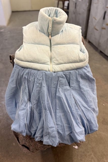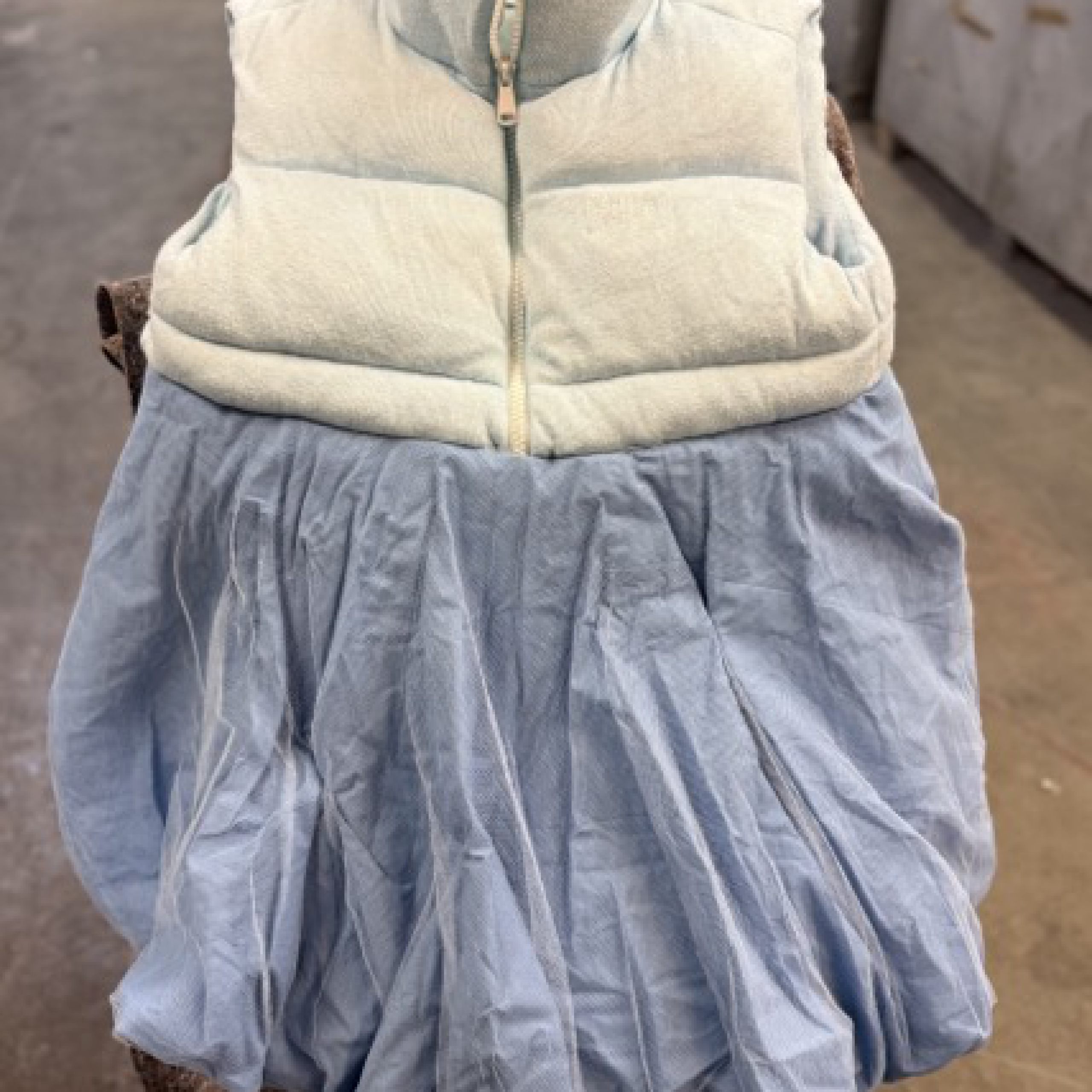 Das Kostüm besteht aus einer recht dicken Weste mit einem angenähten Faltenrock aus Tüll mit Unterstoff.
