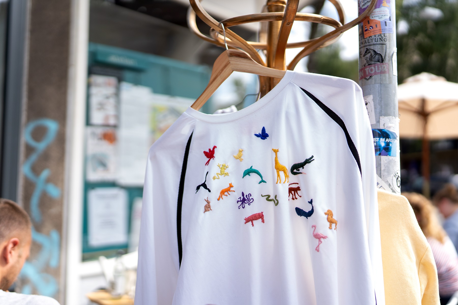 Wir verschönern Kleidungsstücke mit selbstgemachten Patches, Stickereien und Perlen.
