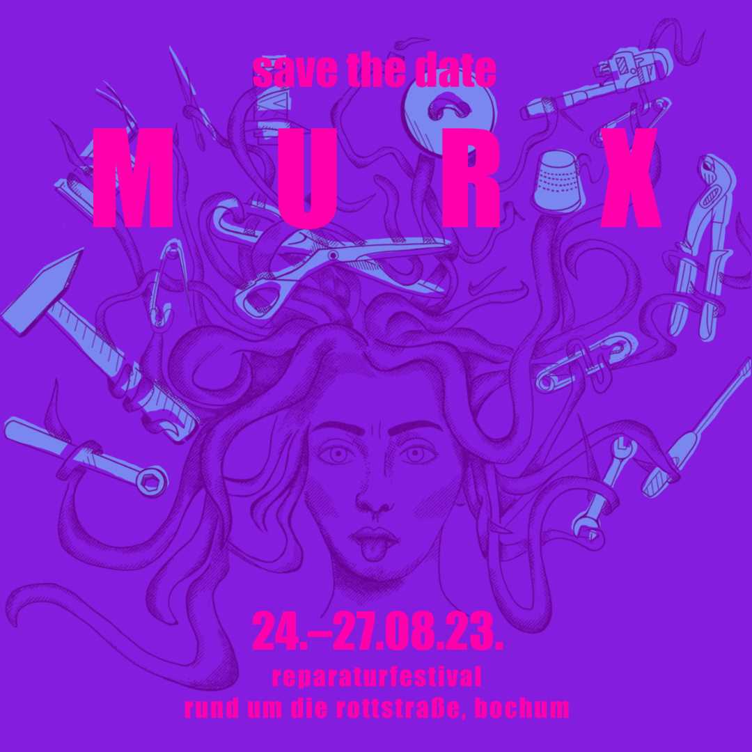 Vom 13. bis 15. August 2021 fand zum ersten Mal das Reparaturfestival MURX – repariert was euch kaputt macht in der Bochumer Rottstraße statt. In einem vielseitigen Programm aus Workshops, Kunstaktionen, Vorträgen und Diskussionen brachte das atelier automatique gemeinsam mit verschiedenen Reparaturkünstler*innen, Initiativen und Aktivist*innen das Thema Reparatur auf den Tagesplan und lud zum Mitmachen ein.