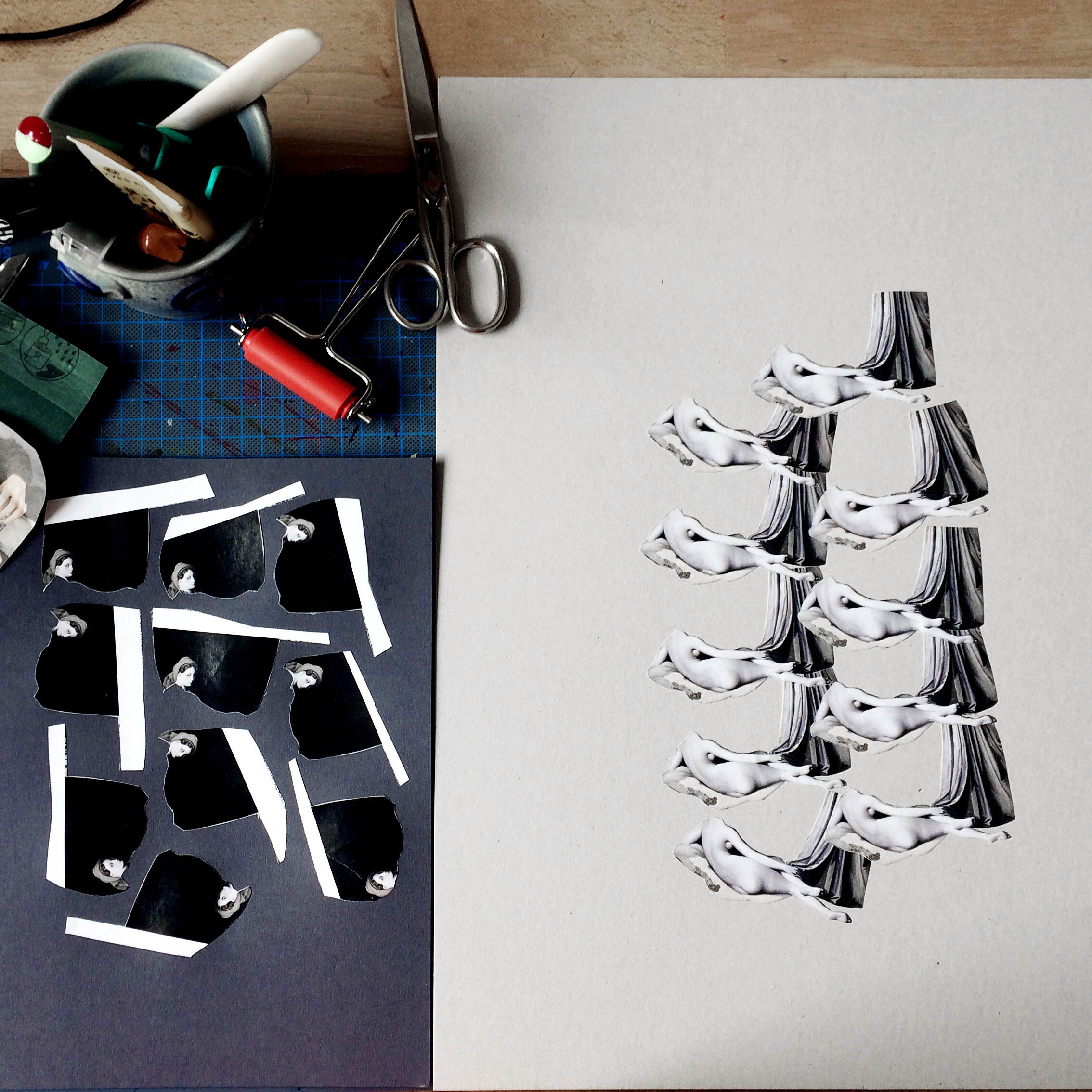 Collage / Reißen, Schneiden, Kleben Wir erwecken Papierreste mit der Collagetechnik zu neuem Leben. Ob ein Bild, ein Plattencover, ein Plakat oder einfach ein Experiment mit spannenden Papierresten entsteht, ist ganz deinen Vorlieben überlassen. Mithilfe von Schneidewerkzeugen, typografischen Elementen und mit Impulsen zur Papierverarbeitung und Techniken zur Collageerstellung kreieren wir nachhaltige, neue Werke aus vorhandenen Materialien.
