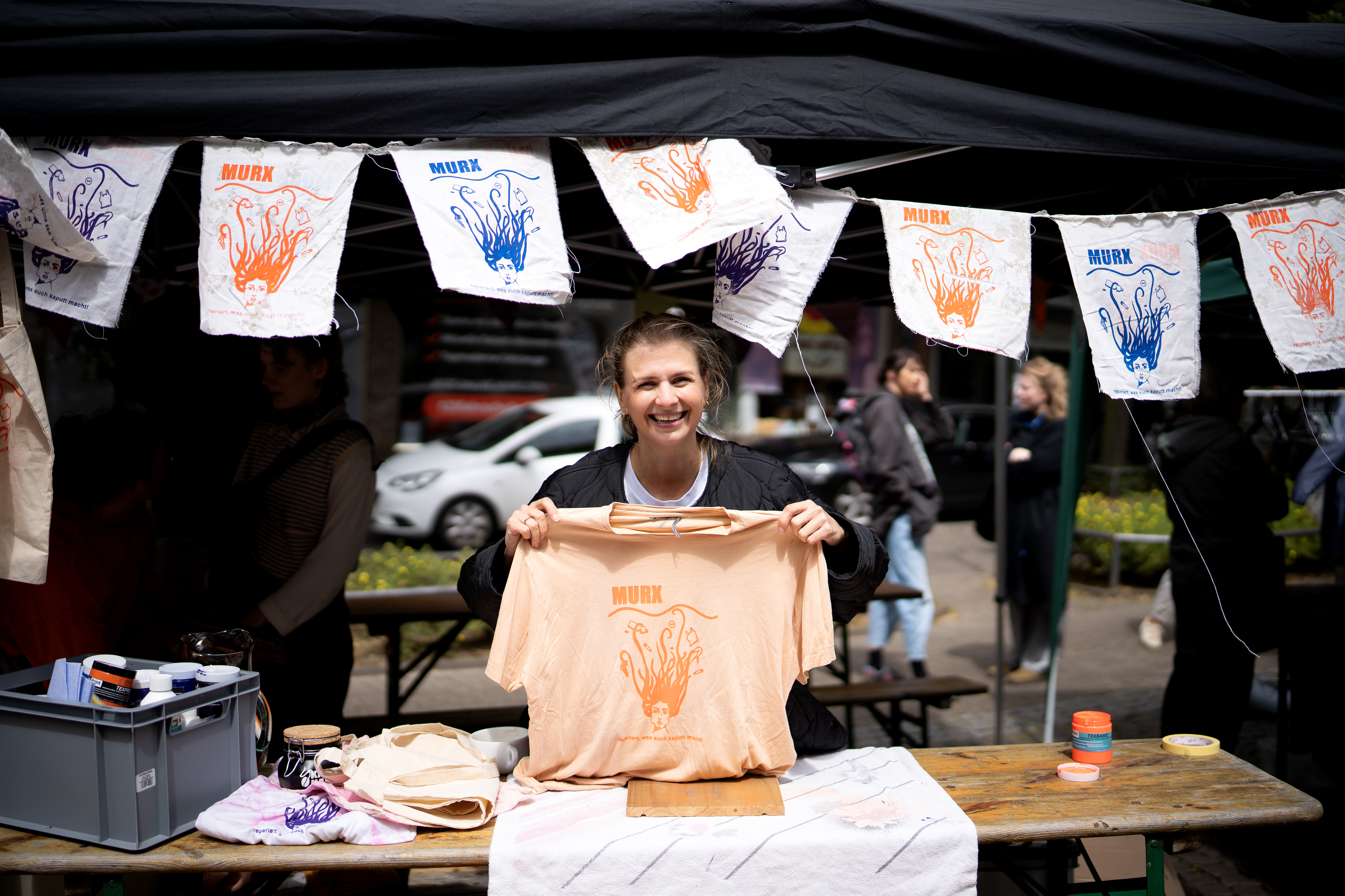 Egal ob alter Jutebeutel, Jeansjacke, Kissenbezug oder Lieblingsshirt. das MURX-Logo, gestaltet von Pauline Näscher, verschönert jedes Teil.
